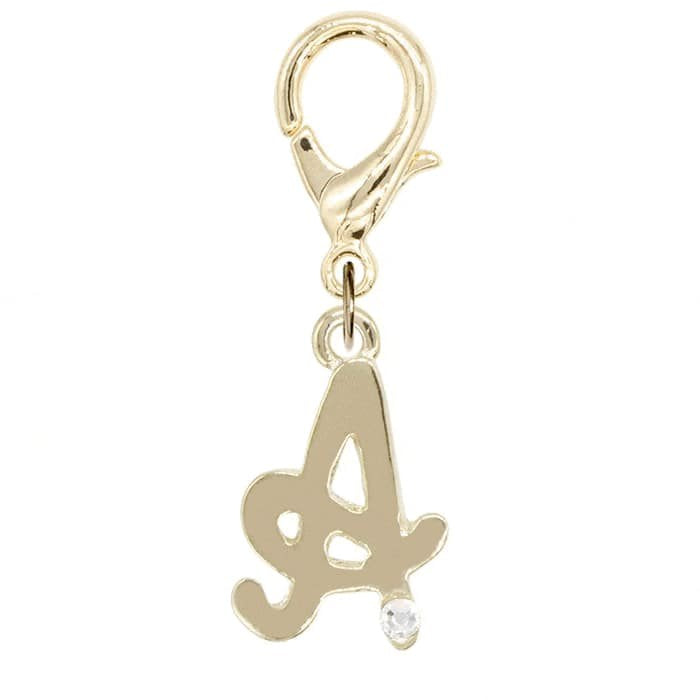 ロゴの端に小さなラインストーンがついたイニシャルチャーム。