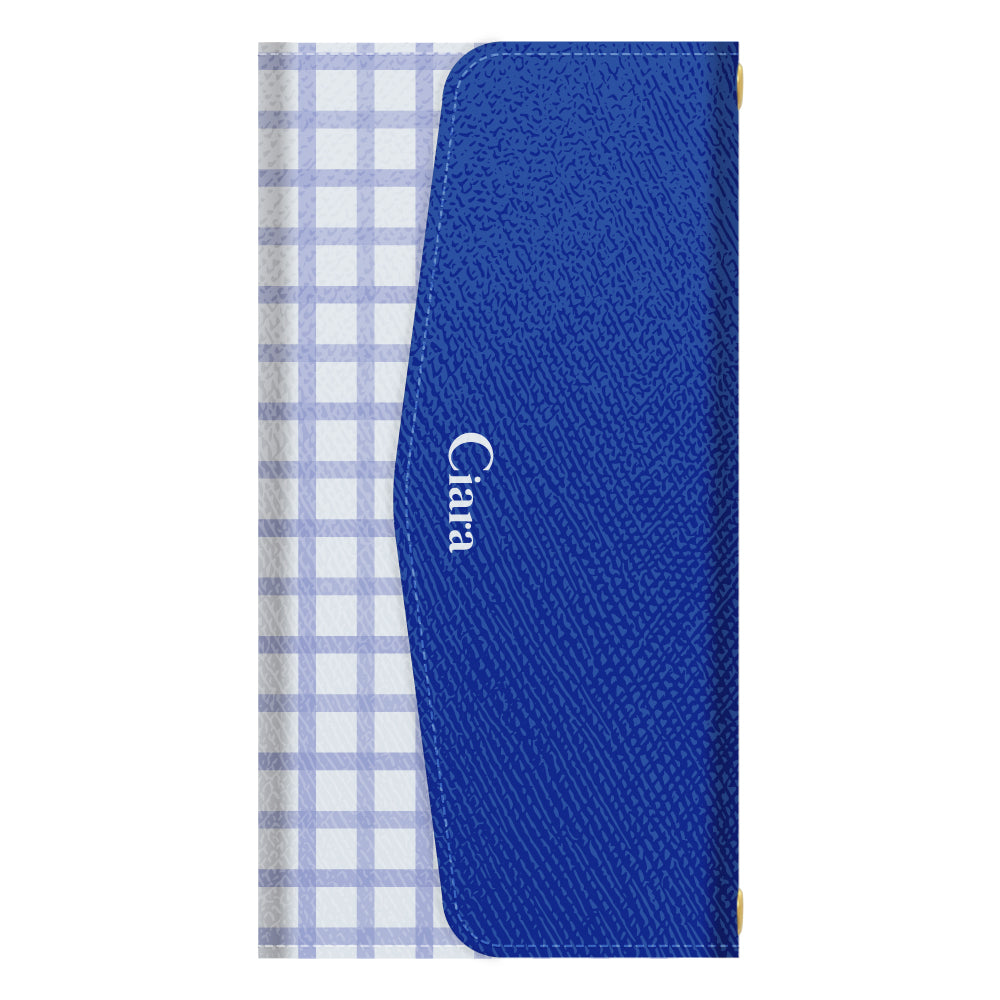iPhone15ケース 手帳型カード収納レザーケース ブロックチェック ブルー
